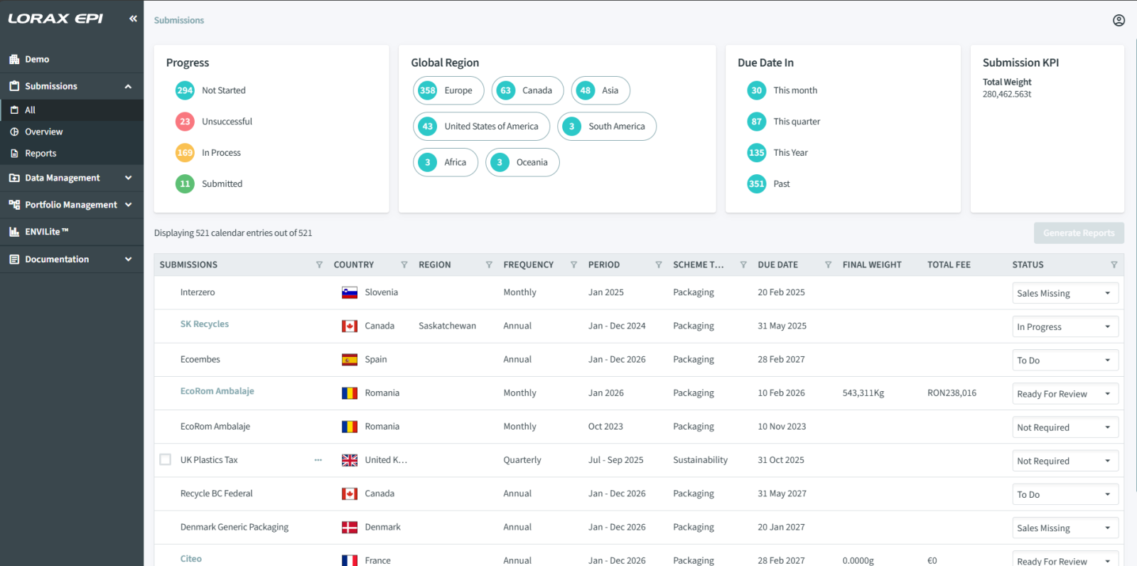 Managing Extended Producer Responsibility (EPR) compliance across multiple jurisdictions can be complex, time‑consuming and resource‑heavy. ENVI™ Lorax EPI’s purpose‑built environmental reporting platform, gives organisations a single, reliable system for managing every aspect of their global reporting obligations.